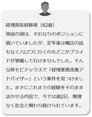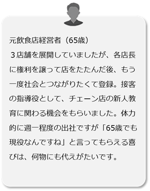 A はい。特に60代〜70代を歓迎する企業案件も多数ございます。経験や人柄を重視する企業が増えています。